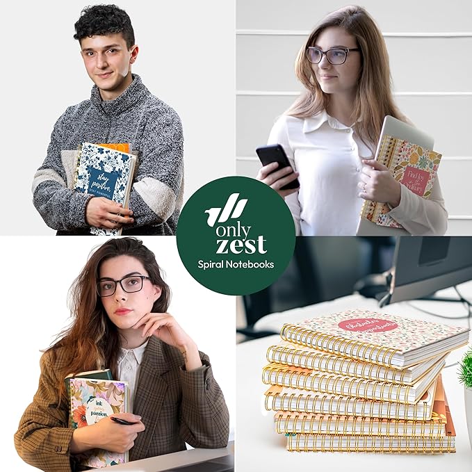 - PREMIUM QUALITY THAT LASTS: Our large-sized notebook (10.25" x 7.25") provides ample space for creative writing, note-taking, meeting or lecture notes, recipes, project planning, drawing, sermon notes, or bible journaling. It features 300 thick ruled pages made from premium paper, minimizing ink leakage. The strong double gold metal spiral binding ensures the notebook lays flat and securely holds pages in place, allowing for easy tearing out, turning in work, or passing notes in class.