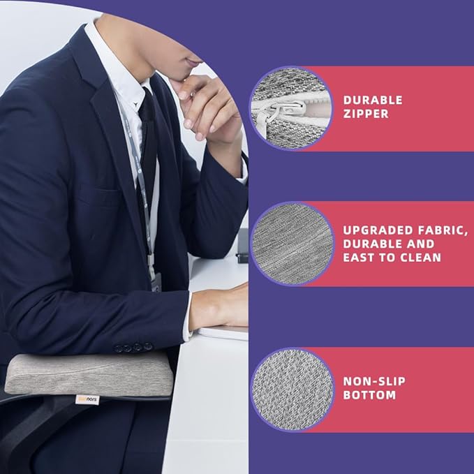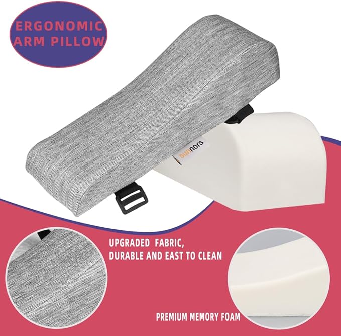 - ERGONOMIC CHAIR ARM PILLOW:Our memory foam arm pads With a unique curved design to better fit your elbow/forearm/arm, relieving pressure and pain and providing extra support, which can relieve pressure between your arm and elbow by providing cushion, creating a comfortable base for your arms to rest easy while working.