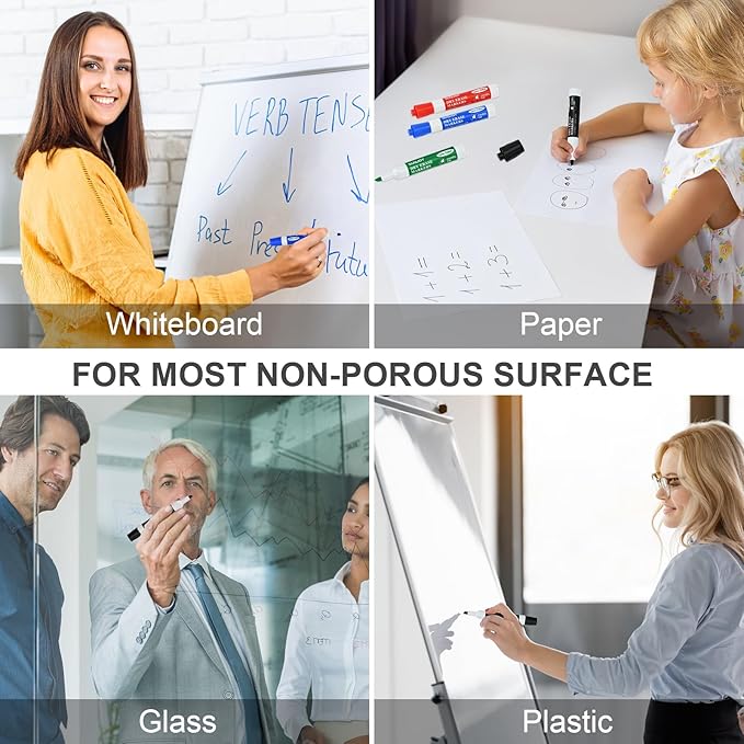 - Suitable for Most Non Porous Surface: These erasable markers are suitable for most non porous surface, are perfect gift choices - as a Birthday gift, Halloween gift, Christmas gift, back to school gift for family and friends. Great Whiteboard markers for students, teacher, business staff;