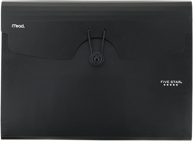 Five Star Expanding File Organizer, 6-Pocket Accordian File Organizer, Bungee Closure, Holds 11" x 8-1/2", Black (72391)