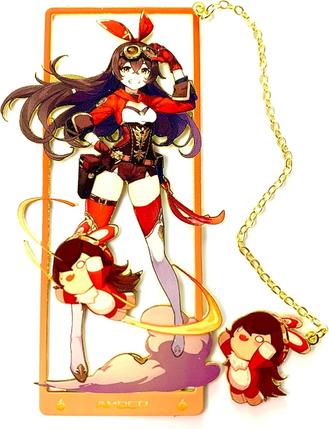 Genshin Impact Amber Metal Bookmark - Anime Figure Merch with 3D Display Box - Birthday Gifts for Fans Friends Gamer Book Lovers - Zllada