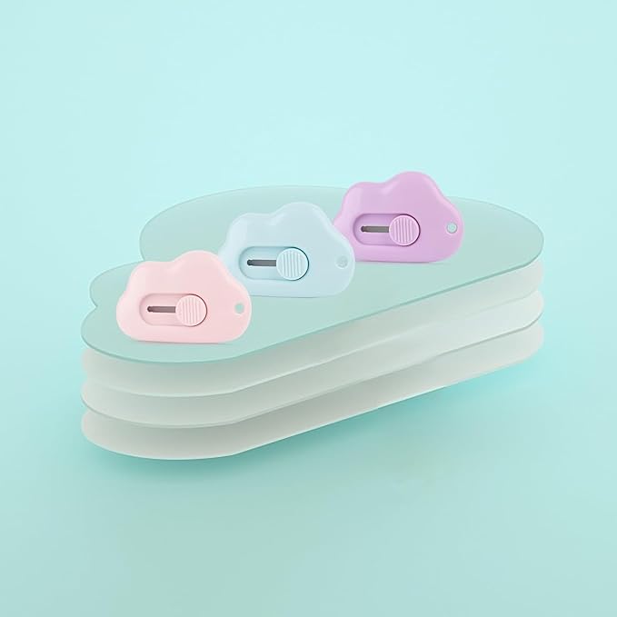 3Pcs Mini Paper Cutter Box Cutter Retractable with Key Chain Hole, Portable Letter Opener with Cute Cloud Shape, School And Office Supplies,Office Supplies