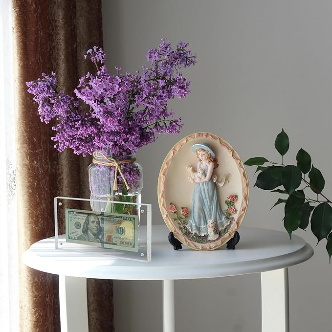 - Double-Sided Transparent Design: Adopting a double-sided transparent window design, currency display frame can be clearly seen from both sides; Acrylic money frame is an ideal choice for storing banknotes, photos, and other items; Whether placed in a room or corner of an office, it exudes a delicate and elegant appearance