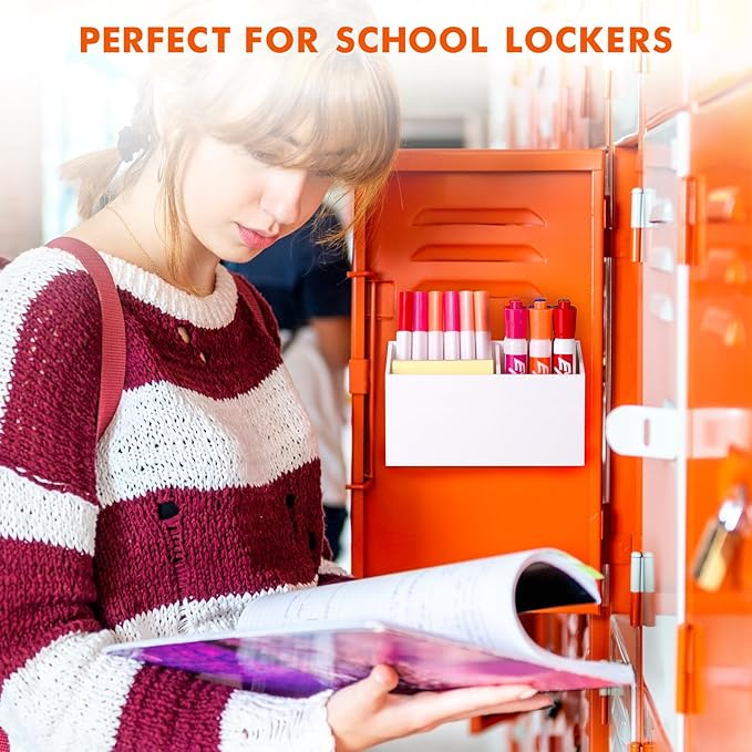 BEYGORM Magnetic Dry Erase Marker Holder for Whiteboard,Non-slip Acrylic Magnet Pen Holder for Fridge Refrigerator,Locker Organizer for Work,Locker Accessories,Pencil Cup for Desk(White)