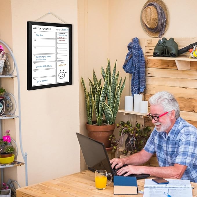 Dry Erase White Board Weekly Calendar Board, Magnetic Whiteboard for Wall,13“x17 Solid Wood Black Framed Message Board, Planner Board for Office, Home, School(Weekly-BB-BK-3343