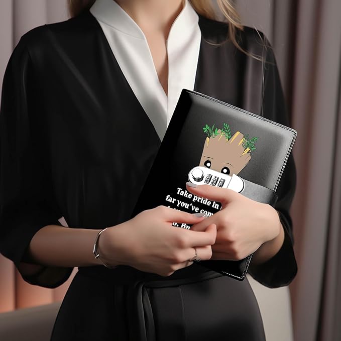 Funny Groot Gifts Leather Combination Lock Notebook Always Remember You’re Braver Than You Believe Leather Locked Journal Notebook Birthday Gifts for Daughter Son (take pride)