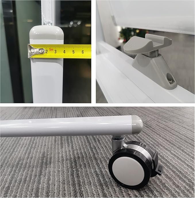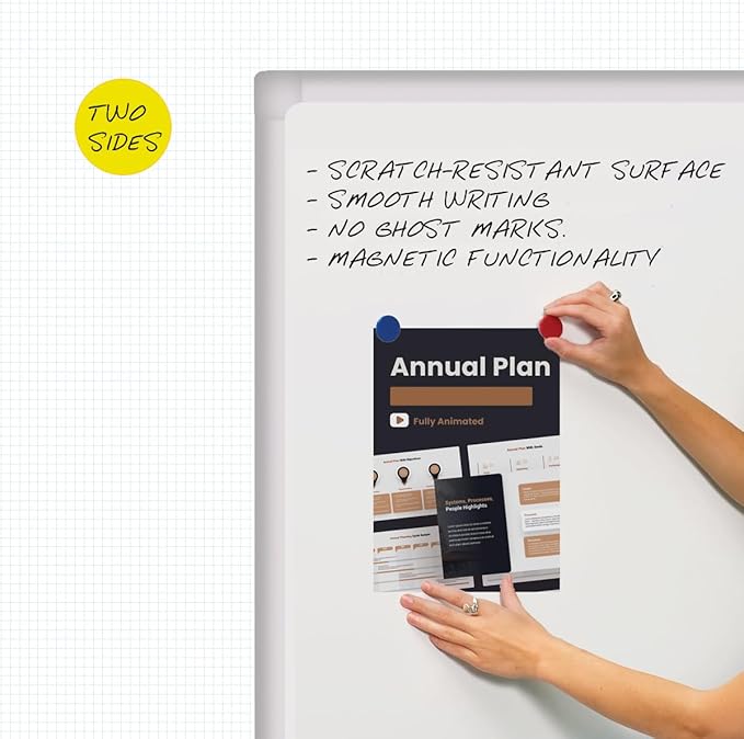 • [Quick Reversible Feature] With dimensions of 48x32 inches, this board doubles your writing space with just a press of the central button to flip it from one side to the other. It offers plenty of space for writing, and you can keep charts or resources on the back, switching back and forth with ease. You can even use both sides simultaneously for different tasks.