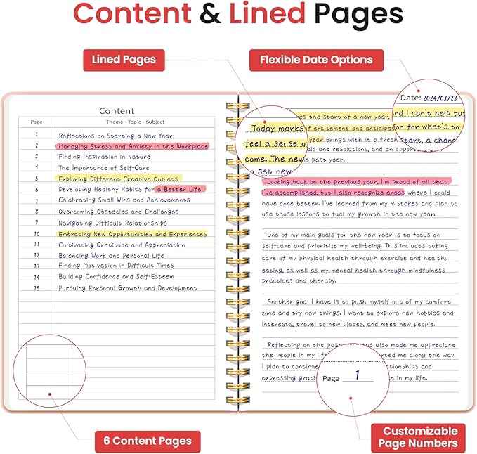 - Sturdy Construction: Our Lined Spiral Journal Notebook is built to last with a sturdy metal twin-wire binding and a tough hardcover. The water-resistant cover shields your notes from damage, while the double-wire design allows for easy folding and flat laying.