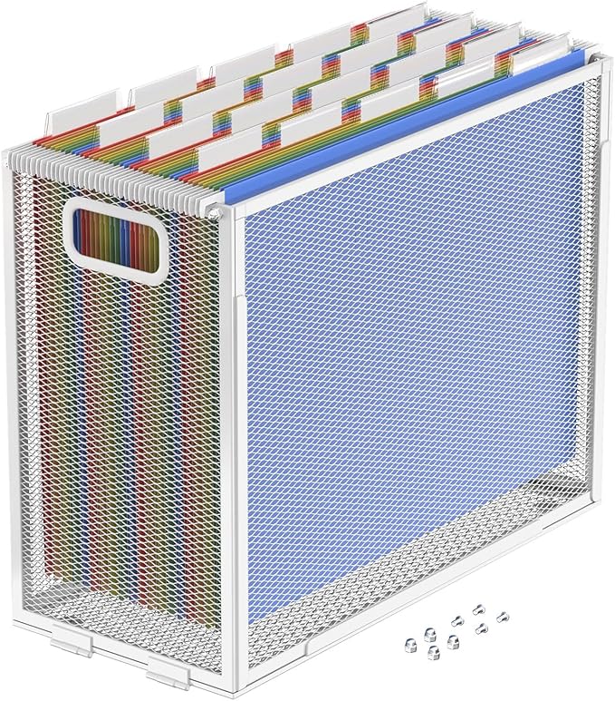 Oterri Hanging File Organizer, Metal File Organizer, Portable Desktop File Organizer for Letter Size Folder, Mesh Hanging File Crate for Office,Folders Not Included(Pure White,1 Pack)