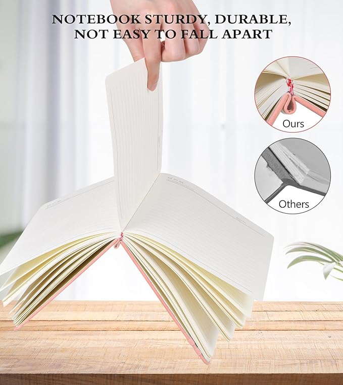 - 【180°LAY FLAT FOR EASY WRITING】The notebook features a beautiful leather-bound cover that is soft to the touch, and its sleek design is a perfect fit for any occasion. 180° lay flat design makes writing easier, reading more convenient, and taking notes more efficient. The 2 elastic closures keep your journal notebook securely closed and the 3 colored ribbon bookmarks allow for easy navigation between important sections.