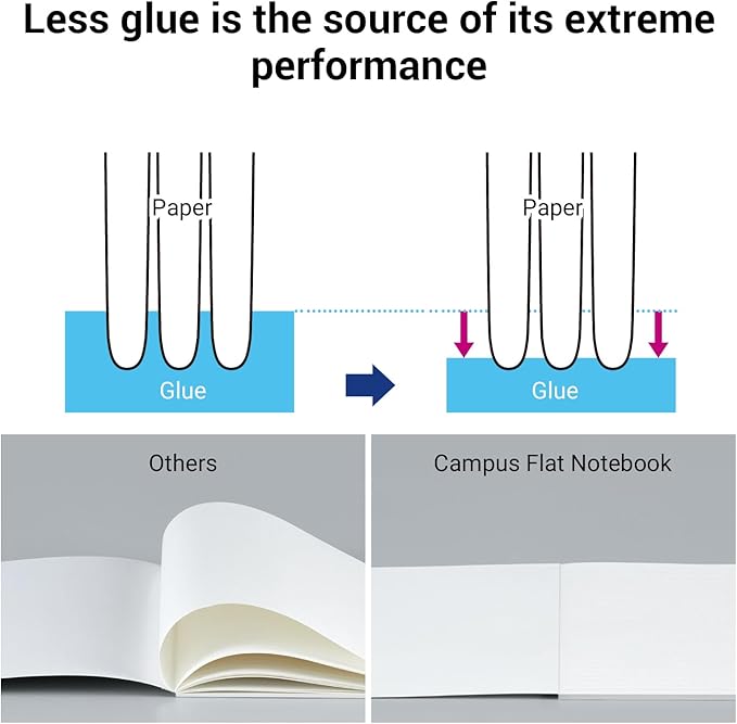 - [Durable Glue Binding] The glue-based spine solidifies the notebook, allowing it to lay-flat and preventing it from falling apart. This design makes it easy to write on every page and ensures a seamless reading experience. The functional cover provides space for writing titles and names. Easily identify and access the content you need.