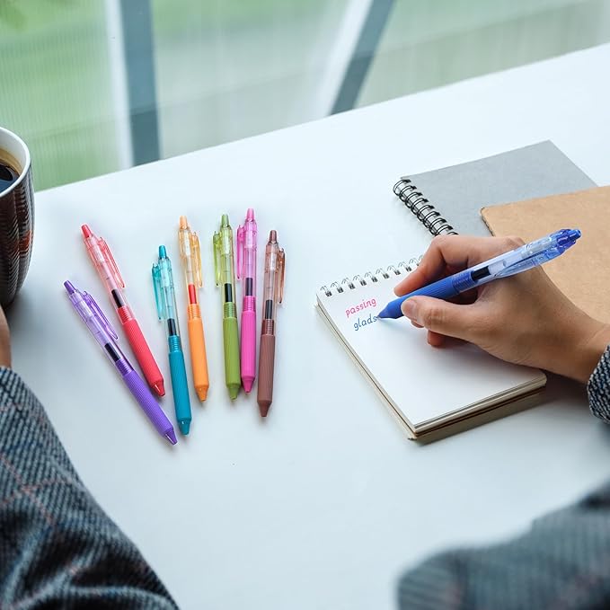 WRITECH Gel Pens Fine Point: 0.5mm Multicolor Ink Retractable 8ct Smooth Writing No Smear for Journaling Drawing Note Taking Silent Click Assorted Colored Pen Set 8ct Juice color