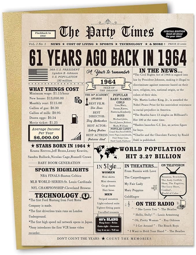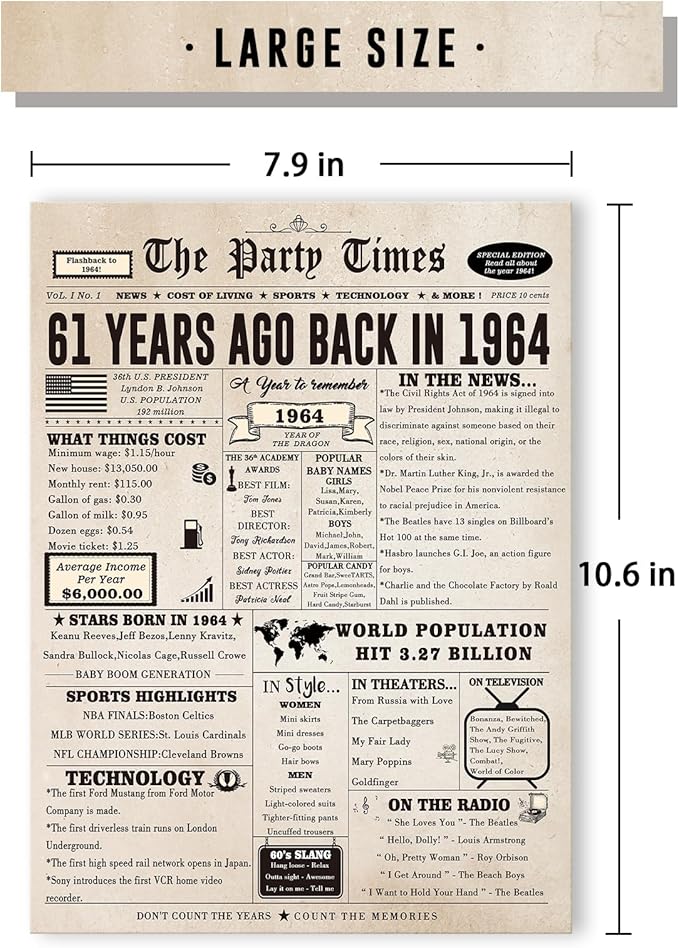 - 【Product Size】A 10.6 x 7.9 inches 1963 birthday card stands out for its oversized size. It comes with an envelope for easy mailing or gifting.