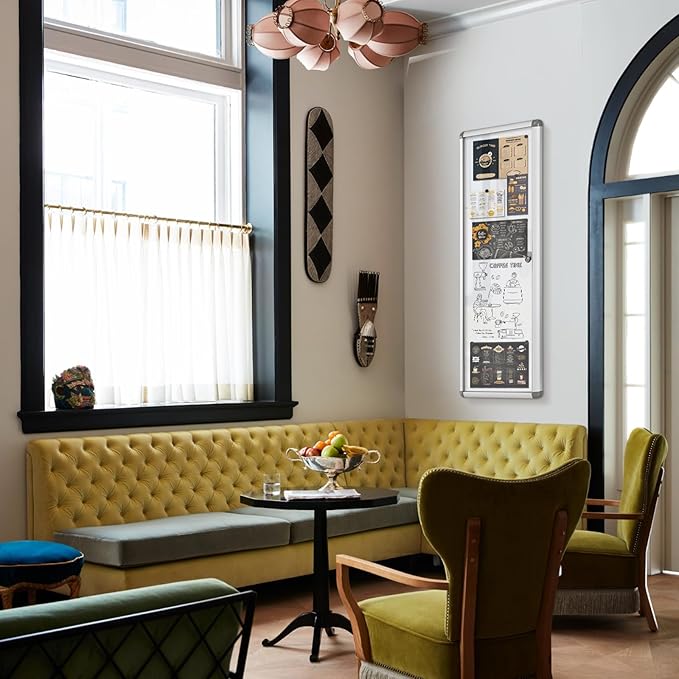 - STYLISH DESIGN The bulletin board features a durable anodized aluminum frame with a satin finish, this board will add a classic look to your office or home. Both strong and stylish, it will be a great addition to your space.
