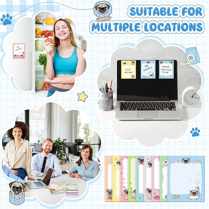 - Sticky and Removable: with good adhesiveness, these dog sticky notes can be easily pasted on smooth and dry surfaces, such as textbooks, notebooks, refrigerators, blackboards, walls, windows, doors, bulletin boards and so on, and they can be easily removed without leaving stains