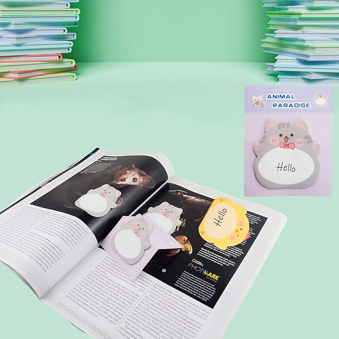- Quantity and Size: 8 packs of cute kitten mini sticky notes, 20 sheets each packs, 160 sheets in total, each pieces measures about 2.4 x 2.3 inch. Can be used to mark, plan message reminder, etc.