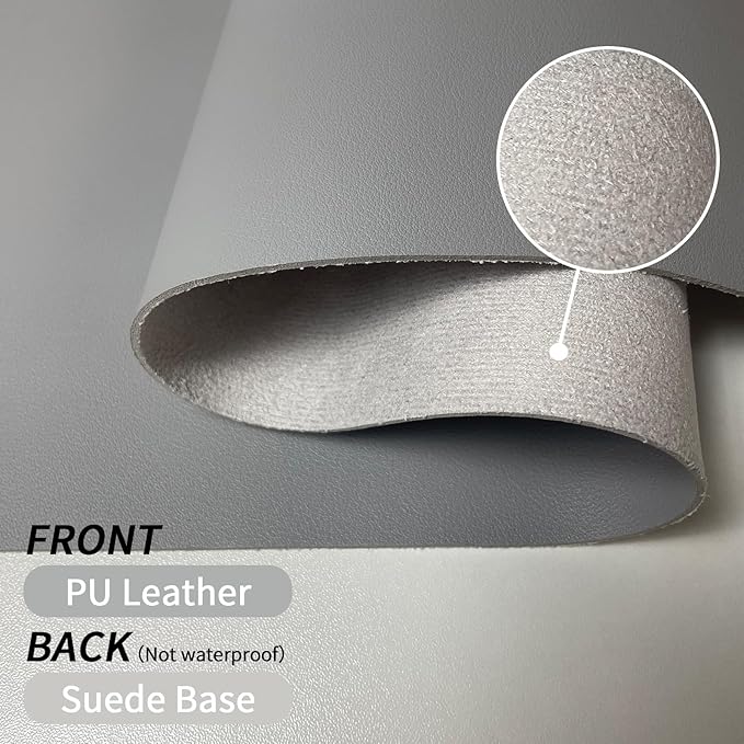 - 【Waterproof & Easy to Clean】The PU leather material desk mat is waterproof and heat resistant, easy to clean. It can perfectly protect your desktop from drinks, ink and other liquids. For cleaning, just wipe its surface stains with a damp cloth. Please note that its suede backing is not waterproof!