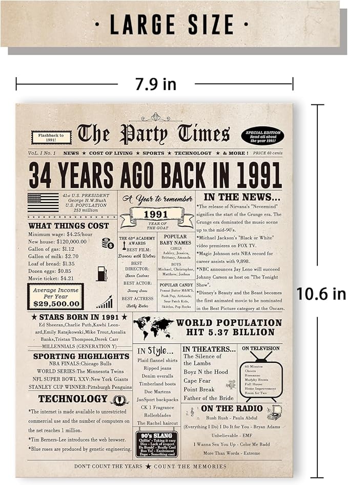 - 【34th Birthday Gifts for Her】The perfect 34th birthday for friends husband wife. It can be used as a birthday card, a poster, a tabletop display, or even a photograph. When receiving the greeting cards, they will feel the love of you.