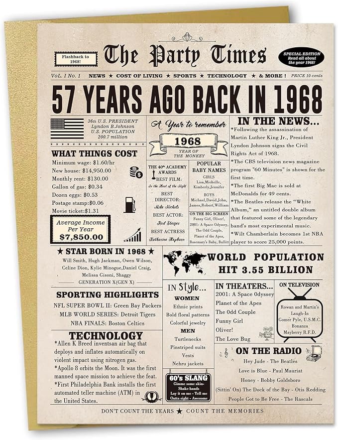 - 【58th Birthday Decorations for Women】This is a good topic. It's interesting to see how much everything cost back then, to see what happened back then.