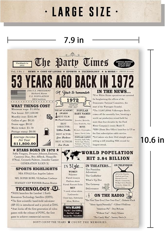 - 【53rd Birthday Decorations for Men】This is a good topic. Look at the price of everything back then and the history of what was going on.