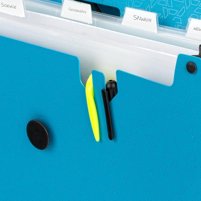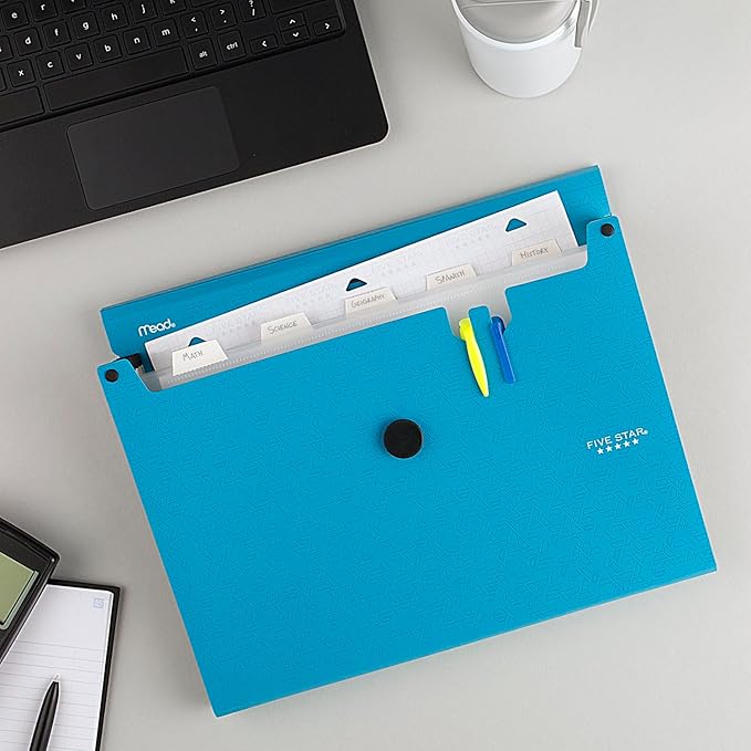 Five Star Expanding File Organizer, 6-Pocket Accordian File Organizer, Bungee Closure, Holds 11" x 8-1/2", Tidewater Blue (350100C-ECM)