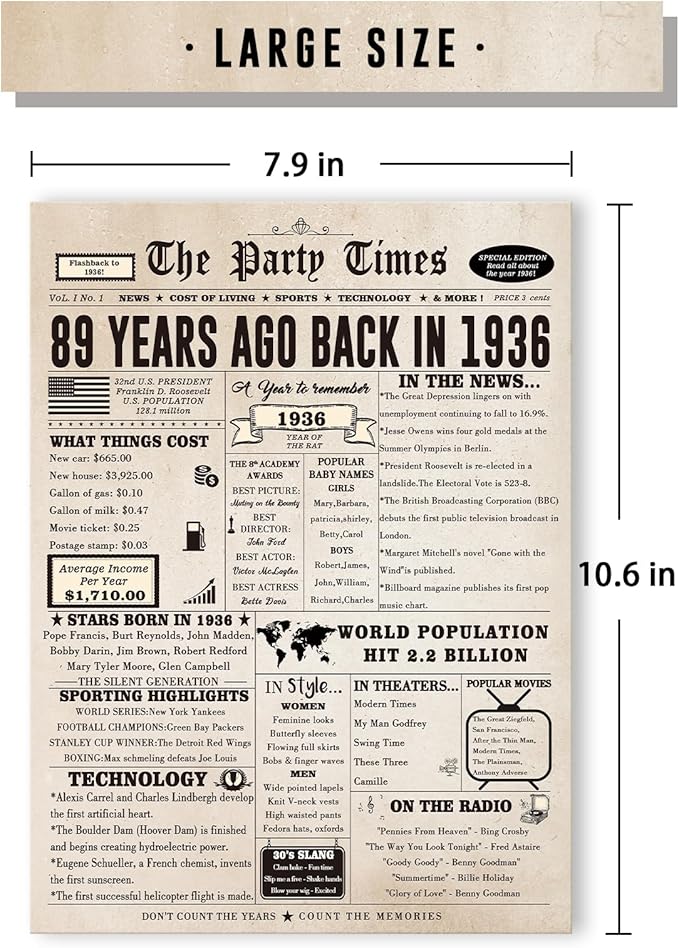 - 【Product Size】A 10.6 x 7.9 inches 89 years old birthday card stands out for its oversized size. It comes with an envelope for easy mailing or gifting.