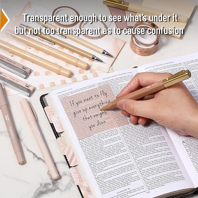 - Equipped with 2 mechanical pencils for precise notes, 2 smooth gel highlighters that won't bleed through pages, 2 vibrant highlighters for key passages, and 2 fine pens for detailed annotations.