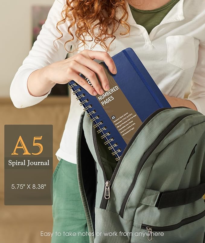 - 【Journal Notebook with 150 Numbered Pages】 The lined spiral journal notebook features water-resistant vegan leather cover touched comfortably, which will help to protect the pages inside and provide a comfortable writing surface. With 150 numbered pages and a 2-page content pages for keeping track of anniversaries, special events, important details, making it easier to review your notes later. Inspirational quotes on the info page to motivate moving forward.