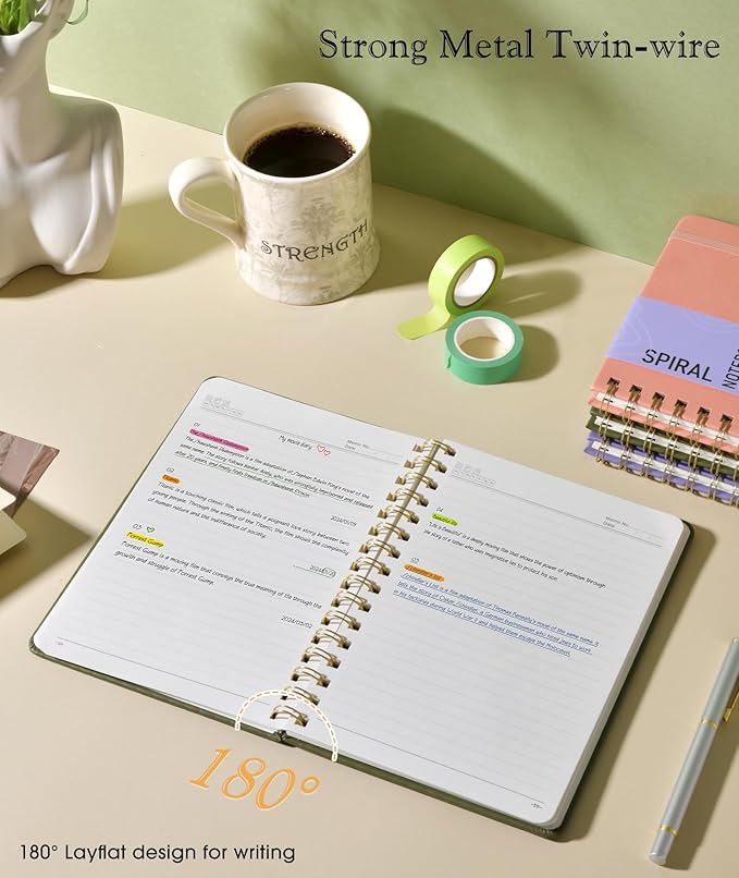 - 【Metal Twin-wire Construction】Our wire-bound spiral journal notebook has a sturdy gold-color double wire spiral with easy-to-turn pages and keeps pages attached reliably. Metal wire ring makes it easy to tear out pages without disturbing the rest of the pretty notebook. The 180°flat binding makes it easy to take notes with either hand, making it easier to read and more efficient to keep track of things.