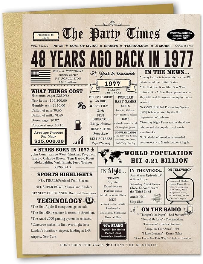 • 【Product Size】A 10.6 x 7.9 inches 48 year old birthday card stands out for its oversized size. It comes with an envelope for easy mailing or gifting.
