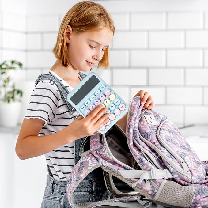 - 【Energy Efficient & Anti-Slip】This cute calculator operates on one AAA battery (not included) and automatically shuts off after 10 minutes or more of inactivity, saving energy and power. Equipped with 4 non-slip pads rims to provide extra friction and stability on a variety of surfaces for quick presses and calculations.