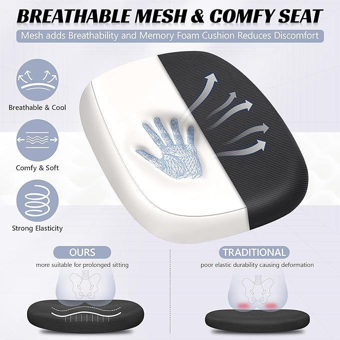 - 【Breathable & Soft】: Imagine sinking into an mesh office chair that feels like sitting on a cloud. Breathable mesh helps with air circulation, and a soft and high rebound cushion, achieves a perfect combination of breathability and comfort, staying cool and comfortable even during the longest working hours.