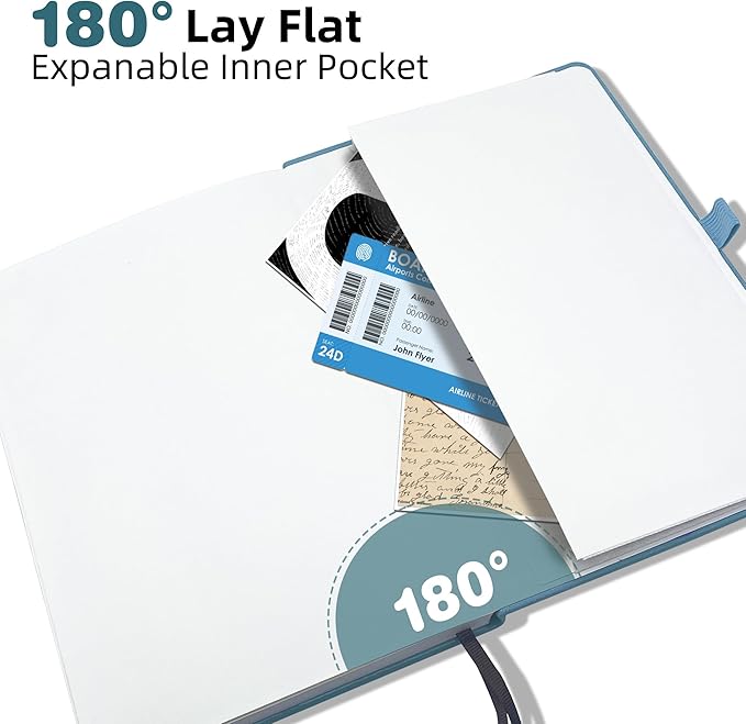 - ✍🏼180°LAY FLAT DESIGN: The classic unruled notebook can be laid flat and fully spread out 180° without hindering your drawing, making writing easier for both right and left-handed users, which make the best use of your writing space.