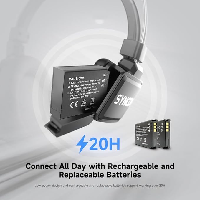 - CONNECT ALL DAY WITH RECHARGEABLE AND REPLACEABLE BATTERIES. Ensures you to easily power up your headset for working over 25H, while the replaceable battery feature allows you to swap in a fully charged backup. Stay connected and communicative throughout your day.
