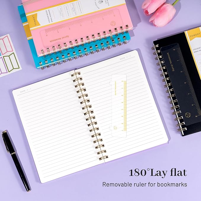 Yoment Spiral Notebook College Ruled A5 Spiral Bound Journal 160 Pages Thick Paper Plastic Hardcover Spiral Notebook 5x7 Wire Bound Notebooks for Note Taking School Office Supplies, Purple