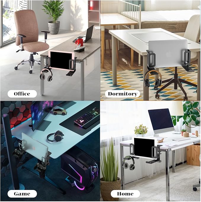 Desk Side Storage,Adjustable Laptop Holder for Desk Side, Steel Hanging Desk Organizer,Clamp on Desk Side Storage Organizer for Laptops/MacBook/Keyboards/Headphone/Gamepad/Backpack(Black)