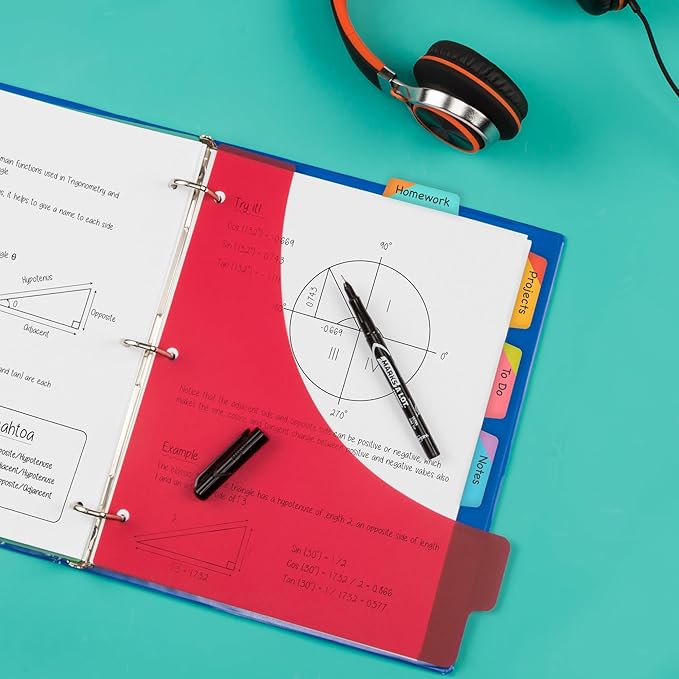 - Includes 6 sets of Homework, To Do, Notes, and Projects tabs, 4 sets of Math, English, Science, and History tabs, and 2 sets of 4 blank colored tabs for a total of 48 tabs