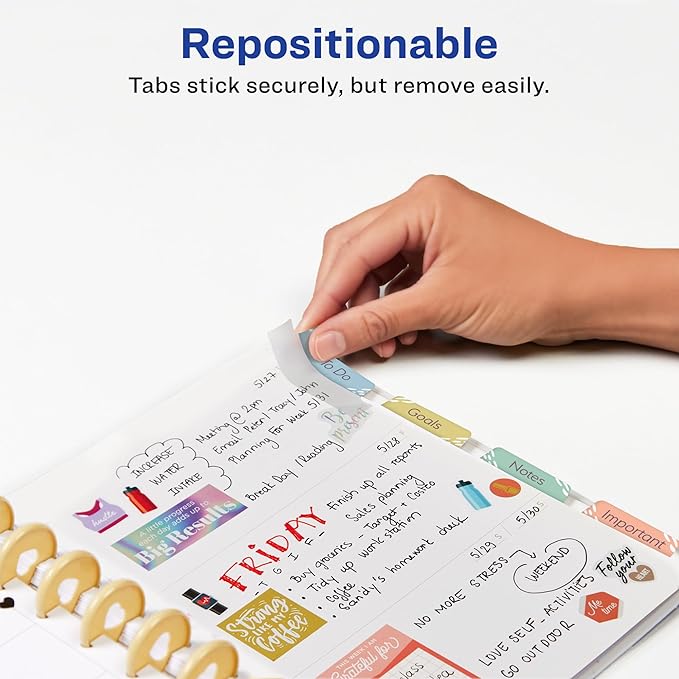 - Sturdy, double-sided margin tabs preprinted for notes, goals, to-do lists and important reminders are ideal for your daily planner