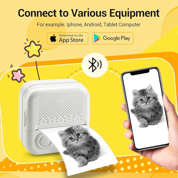 - Educational and Entertaining: The Mini Sticker Printer offers more than just printing capabilities. It features an app with game templates that can be printed out, allowing children and adults alike to engage in educational activities such as counting, mazes, puzzles, calculations, coloring, alphabet learning, and card recognition. Take learning to the next level and enjoy interactive games with friends or parents. Print pictures from your phone directly.