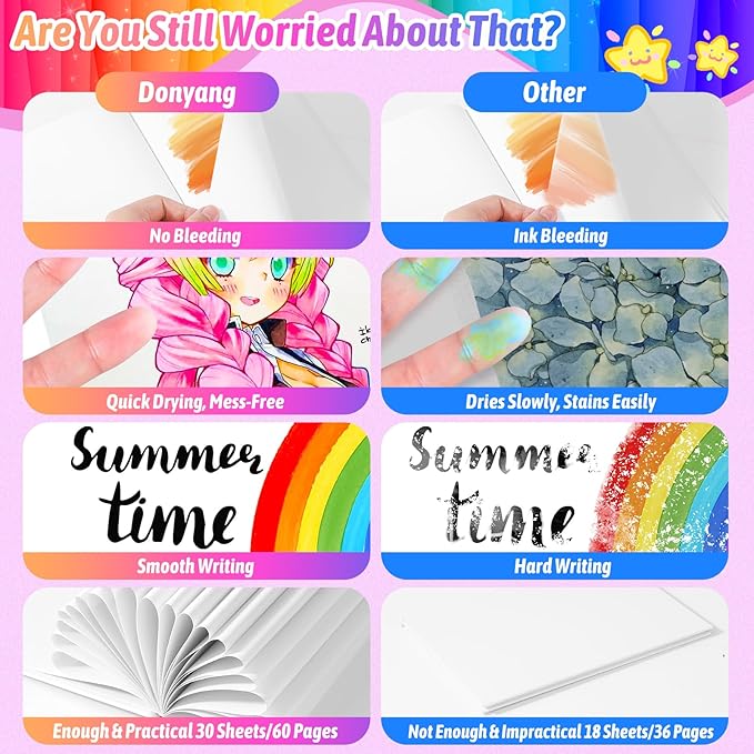 - All Ages Can Be Creative: Everyone, young and old, will love using these books. These blank coloring books are great for all ages to let their imaginations run wild and create their own stories. Our blank paper board books can match well with multiple writing tools, including ink pens, ballpoint pens, gel pens, pencils, colored pens, crayons, stickers, paint, and logos all work great, providing you with a nice user experience. Enjoy your artistic journey with Donyang coloring books.