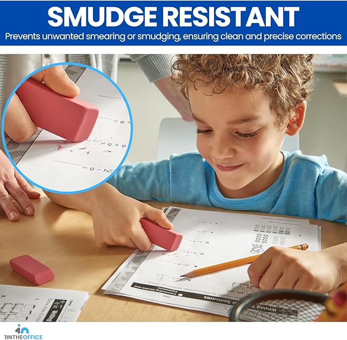 • Supple rubber is easy to maneuver and erasers cleanly without tearing paper.