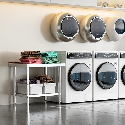 - SAFETY NSF STAINLESS STEEL TABLE: Certified through NFC, ensures its suitability for household, commercial kitchen, laundry room, and other industrial uses. The #201 stainless steel material of the table exhibits corrosion resistance, high strength, and durability. Its smooth surface makes cleaning quick and easy, saving you valuable time.