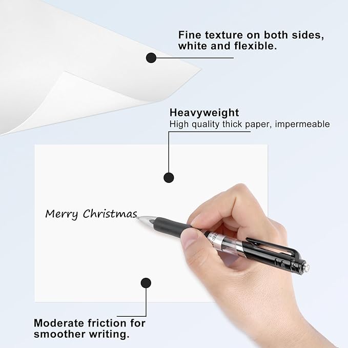 - 【Thick Cardstock】: 92 lb/250 gsm white cardstock has a fine and smooth surface, absorbs ink evenly and is sturdy and durable, ideal for printers and writing.