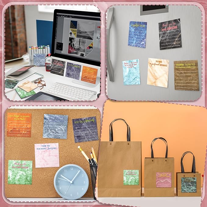 - Quality Material: appreciation sticky notes are designed with self adhesive, strong adhesion, and can be easily pasted on many smooth and clean surfaces, such as books, doors and windows, refrigerators, cabinets, desks, drawing boards, etc.; Moreover, they will not leave behind after removal any sticky residue, odorless and smooth, easy to peel and stick, good adhesion, not easy to remove, bring convenience to your daily work and study, or Christmas sticky notes gift