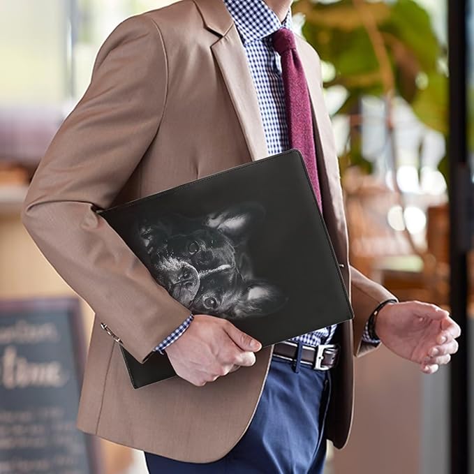 Office Folder Pug Dog Black Print PU Leather Padfolio with A4 Size Clipboard Clip for Business Resume Interview Document Sleeve Binder Folder for Men/Women