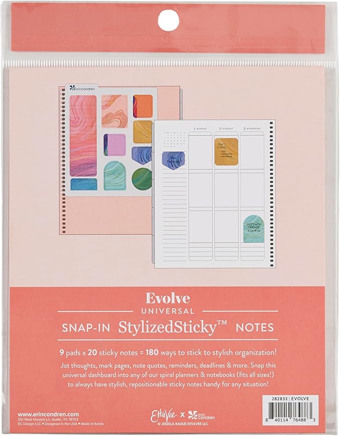 Erin Condren Universal Snap-in Stylized Sticky Notes - Evolve | 9 Pads, 20 Sheets Each, 180 Sticky Notes Total