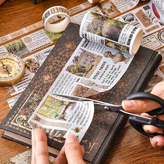 - đăCLASSIC ART DESIGNăThis washi tape has a strong retro style, featuring a yellowed base color adorned with meticulously designed vintage patterns such as stamps, newspapers, specimens of flora and fauna, building Notes and manuscripts. It takes you back several decades, allowing you to experience the bygone era