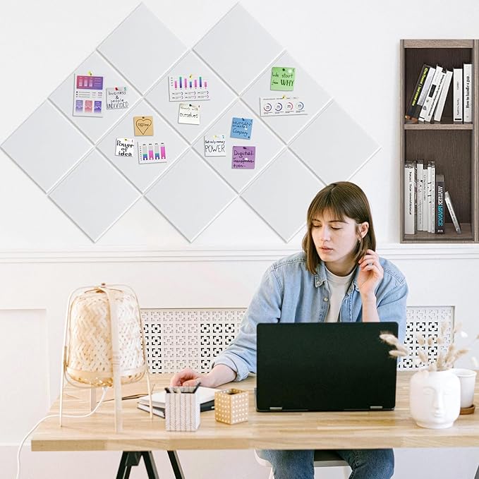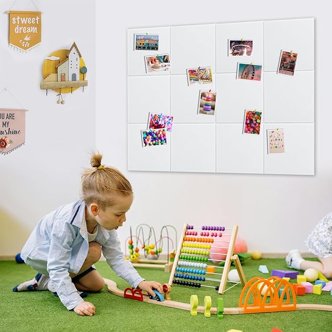 - Frameless Design: These 48"x36" felt pin boards offers a sleek frameless look that enables you to create unique layouts. Easily arrange the squares in a patchwork or cut them into any desired shape to fit your aesthetic needs