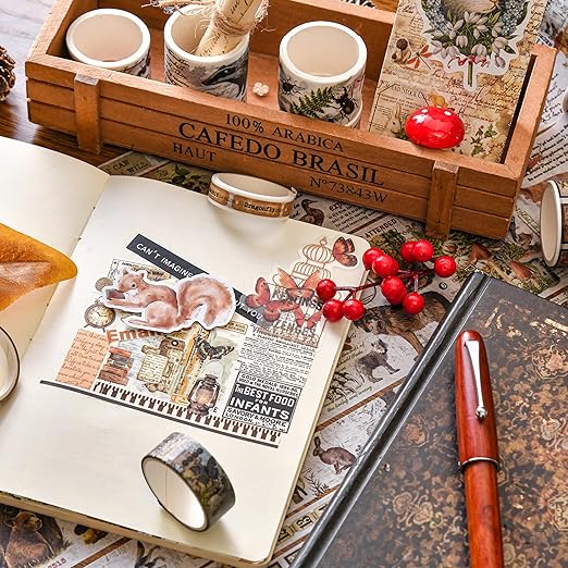- đăCLASSIC ART DESIGNăThis washi tape has a strong retro style, featuring a yellowed base color adorned with meticulously designed vintage patterns such as stamps, newspapers, specimens of flora and fauna, building Notes and manuscripts. It takes you back several decades, allowing you to experience the bygone era