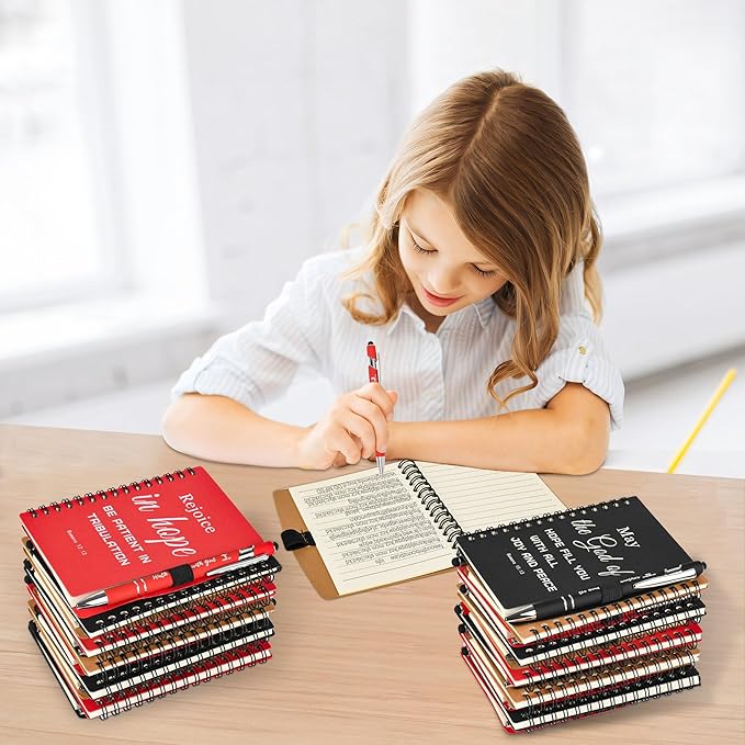 - Product Quantity: You will receive 30 sets of Bible journal and Christian pens, featuring uplifting Bible verses printed on them. Each collection includes 10 different designs of Bible journal and 10 styles of Christian pens, totaling 30 sets (30 small journals and 30 Christian pens).